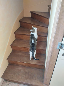 C’est un chat curieux et gourmand, toujours partant pour une sieste sur les genoux ou pour observer le monde depuis son arbre à chat.
